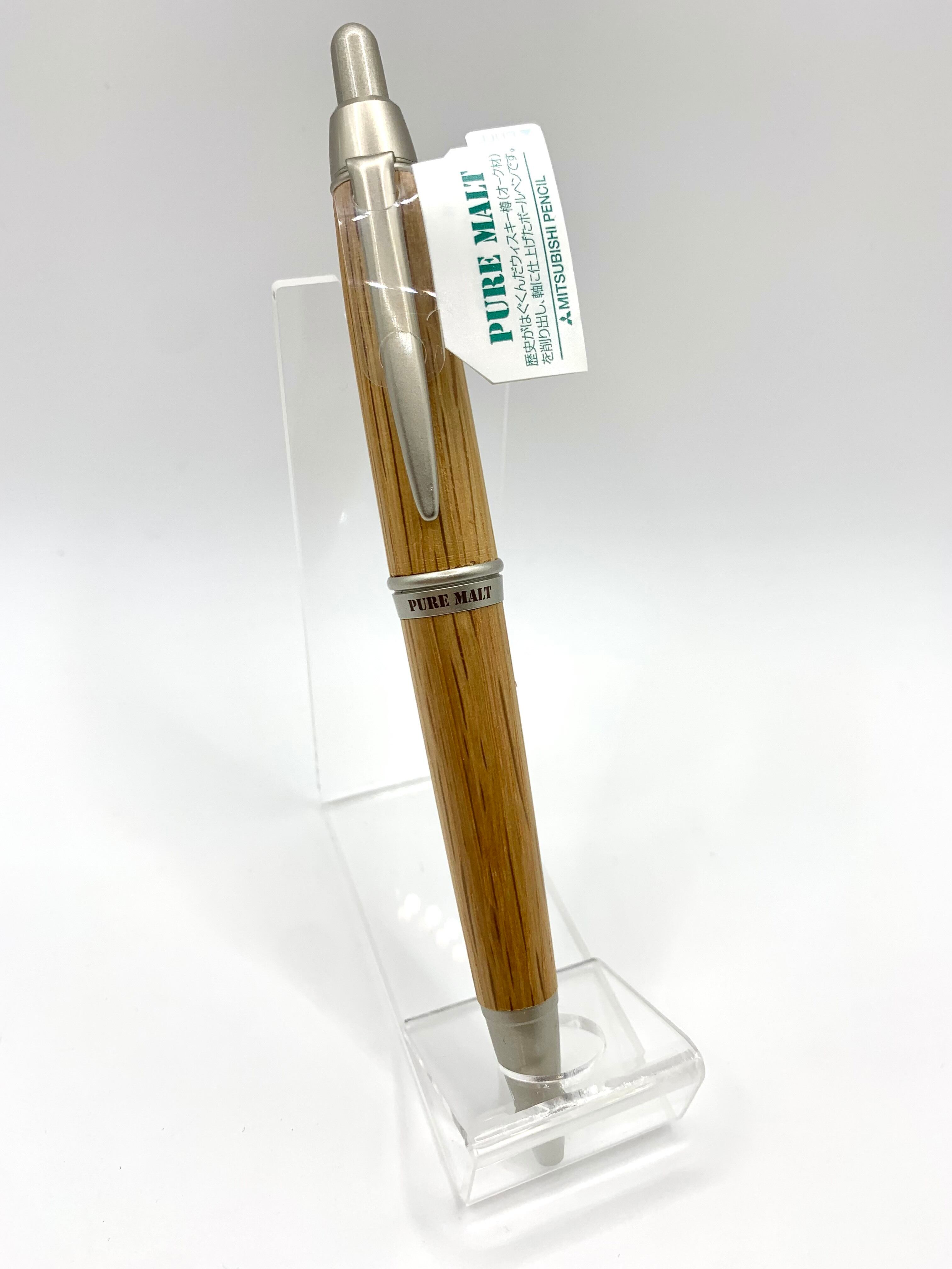 何十年にもわたりウイスキー樽として使用されていたオーク材を、ボールペン素材にしました。木の優しい質感とぬくもりが手にしっくりなじむ生涯を共にしたい一本。